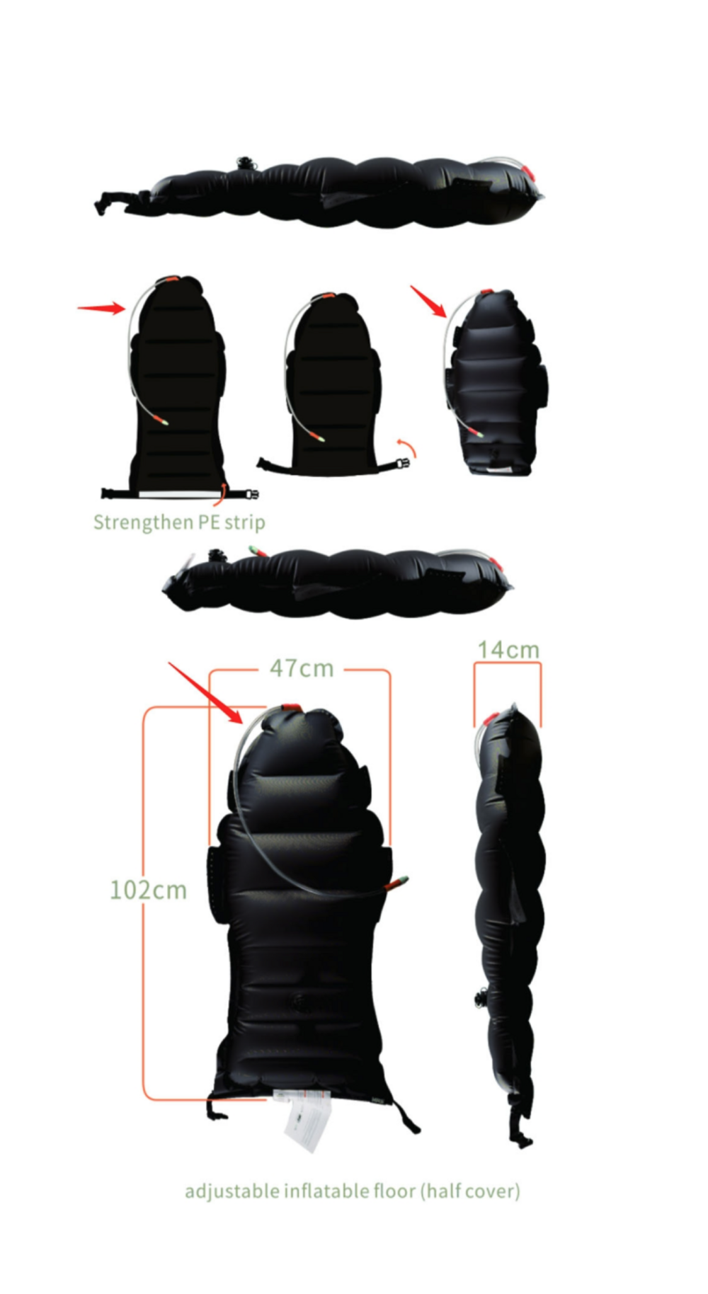 - Inflatable floor (with integrated seat): 460 g