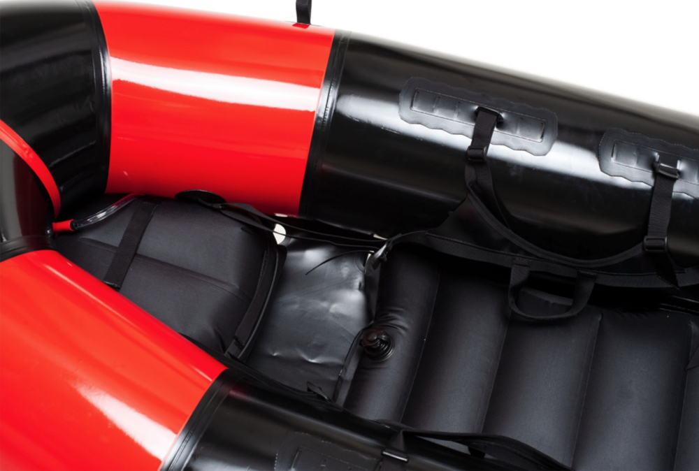 - Inflatable floor with integrated seat and back rest, adjustable footrest: 210-denier weaved Nylon with 2,8mil single-sided urethane coating, weathering resistant, anti-hydrolysis