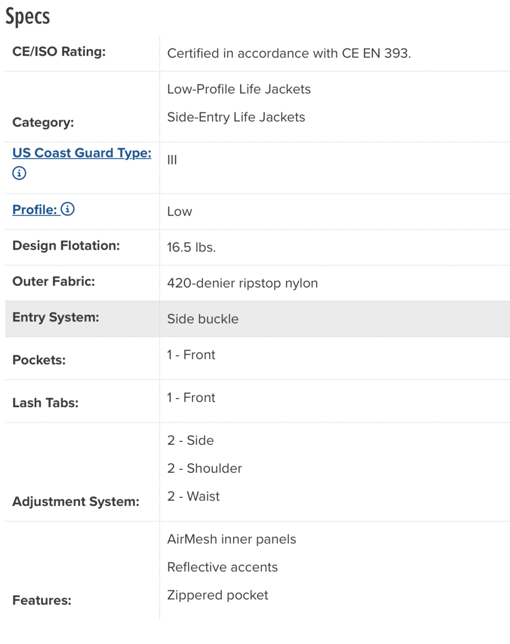- Graded Sizing takes into account the appropriate amount of flotation needed for individual body types, resulting in a better-fitting, more comfortable life jacket for all.