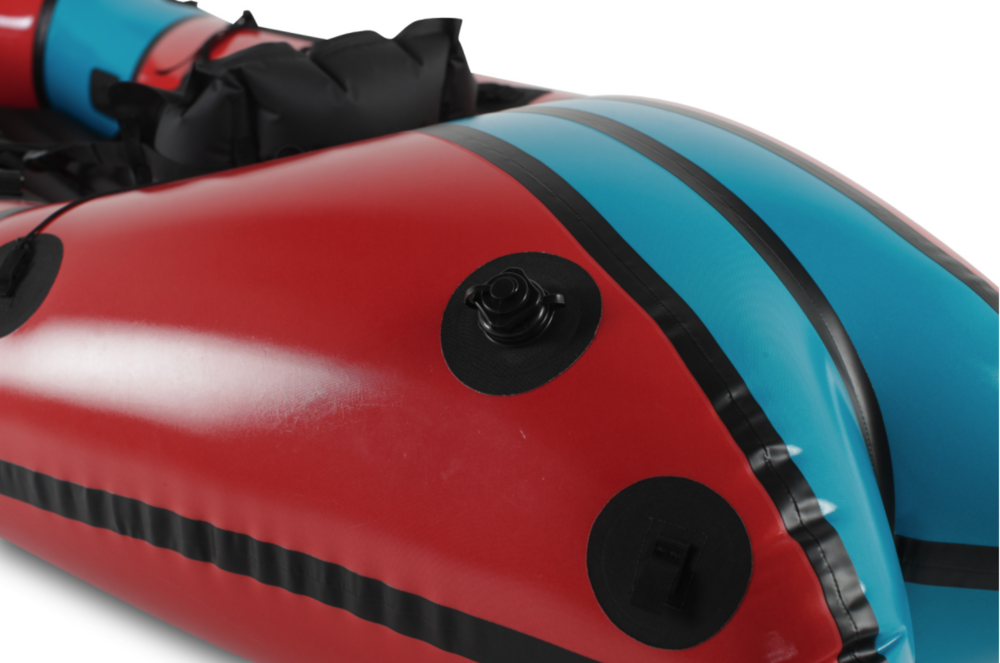 The Revo XL is part of the Revos concept: the interplay of (lockable) self-bailing, profiled floor and the innovative TwinTailTM. Thanks to the bailing effect (splash water runs off through the bottom), the boats does not require a spraydeck and can also be configured as a lightweight, minimalist single. This results in a unique range of uses from whitewater to touring. For this purpose the packaft uses the following constructions: