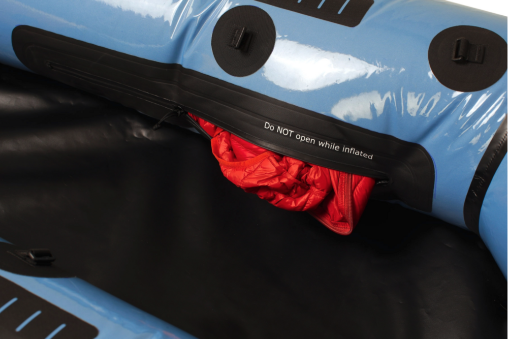 The Revo XL can be optionally equipped with TubeBags. The two centrally positioned and IPX7 waterproof luggage zippers with directly backed, airtight inner pockets result in a luggage storage space of 70 l each directly in the tube.