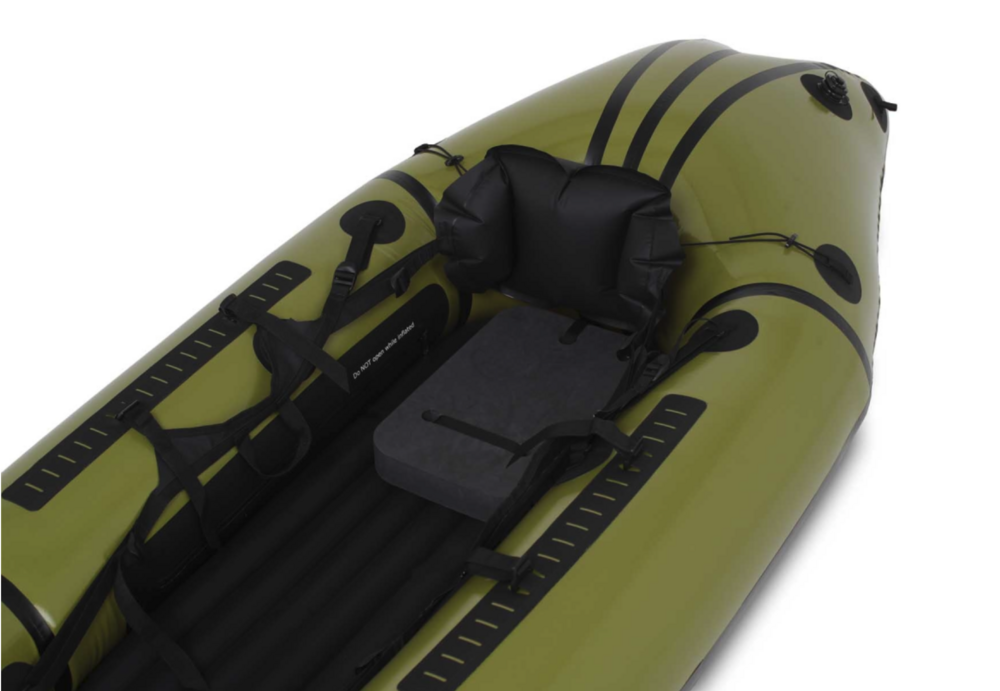 Since the floor mat already reaches a certain build-up height (to ensure the steering function), there are various options as a seat (depending on preference). The included PackSeat light is comfortable but may be a bit tippy (high center of gravity). The optional FoamSeat is lower and supports the drainage of water very well (through channels). which is our recommendation in white water. Tall people (but under 100 kg) can also sit completely without seat directly on the mat.