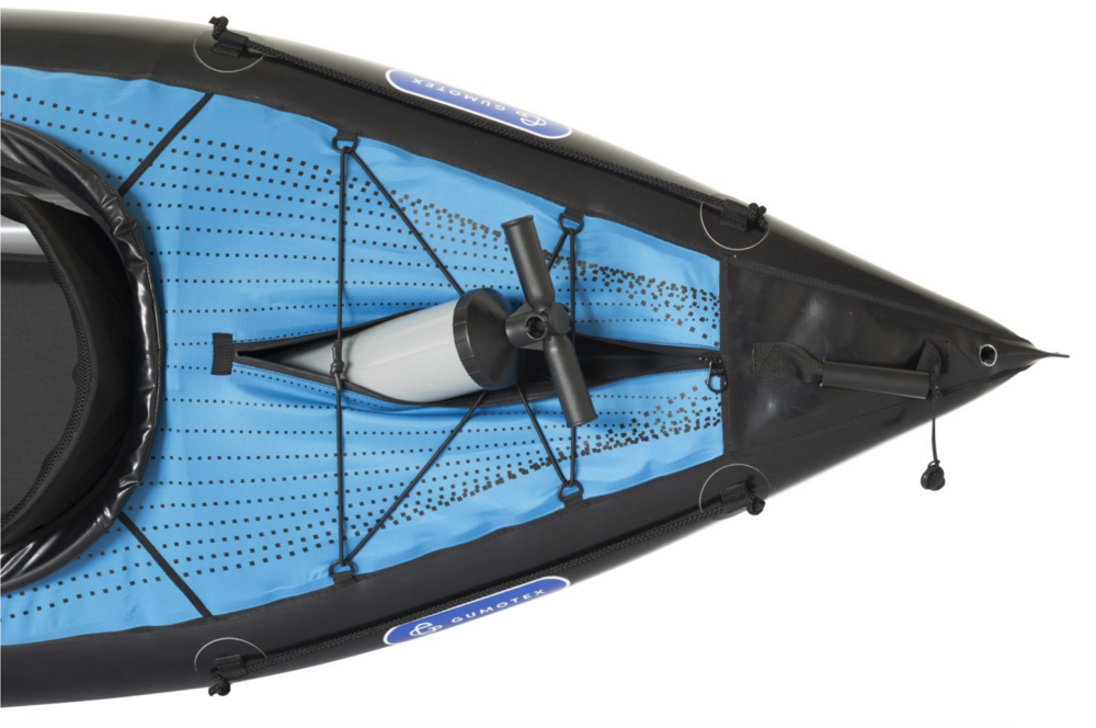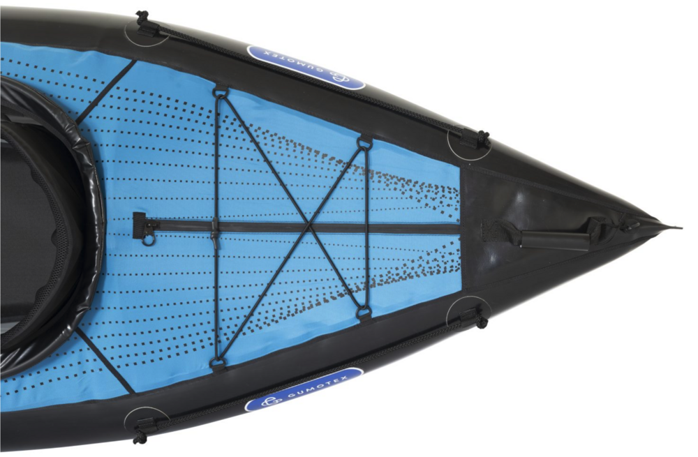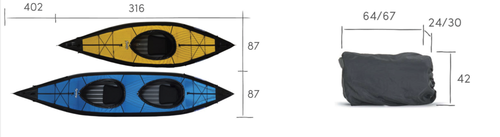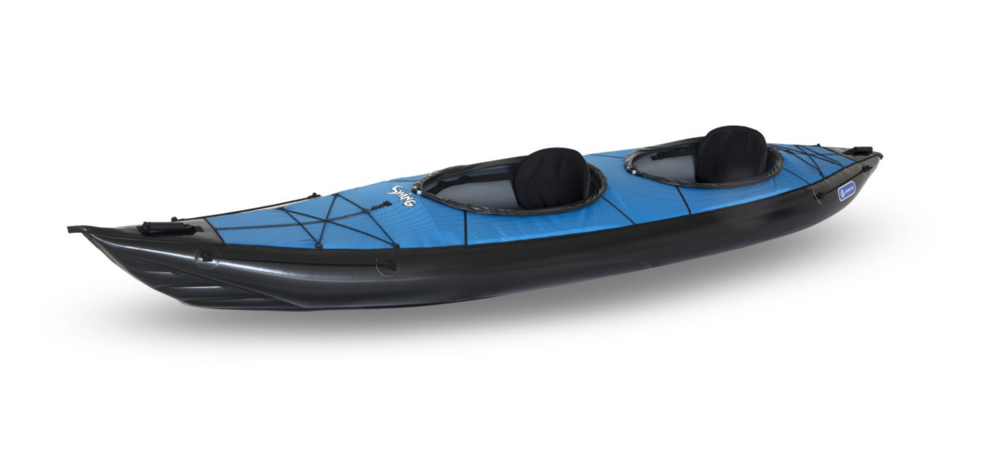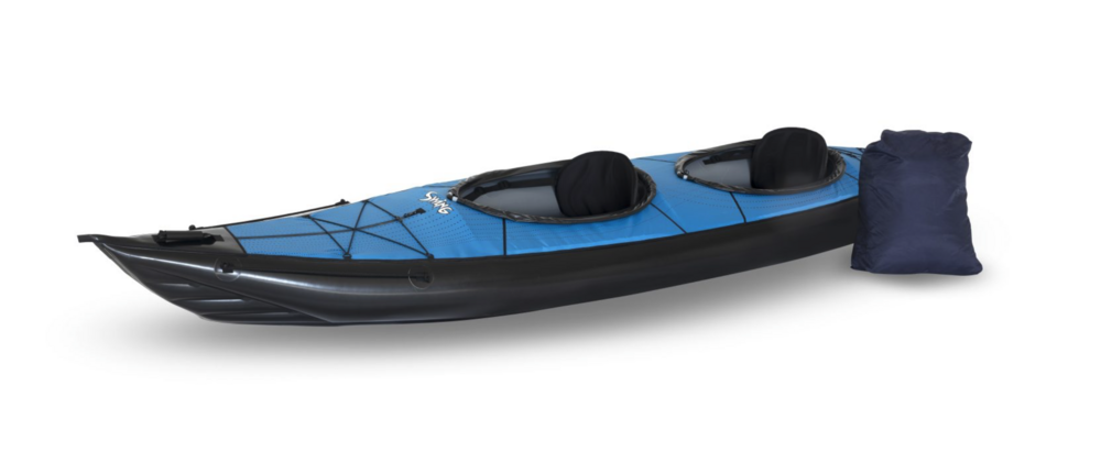 SWING 2 is a sit-in inflatable kayak great for relaxing trips on sheltered waters, harbours, lakes and rivers up to Gr. 2 white water. The kayak is supplied with three aluminium reinforcements for improved rigidity of the hull, maneuverability and stability. The reinforcements also shape the deck of the kayak. Thanks to its low weight the kayak is perfect for trips with frequent portages. The enclosed deck prevents water getting in. The kayak is available in a single and a double version.