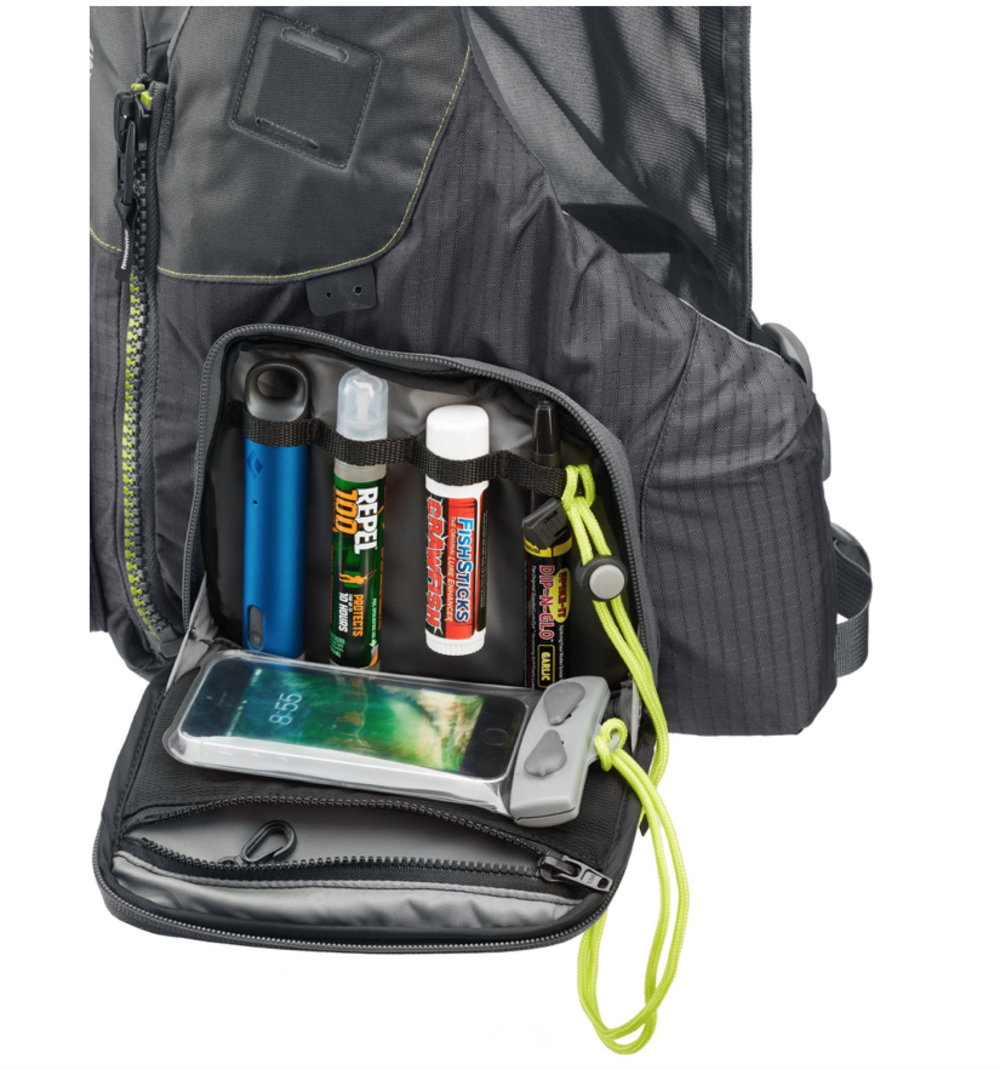 Also features a rod holder, strobe attachment point, reflective accents and knife lash tab.