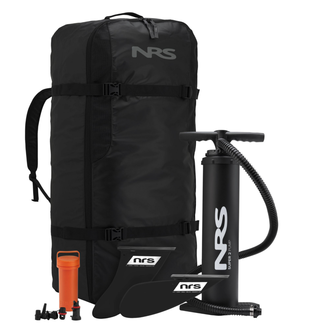 - Includes a high-pressure Super Pump II (with pressure gauge) one Touring fin, one Grass fin, travel backpack and repair kit.